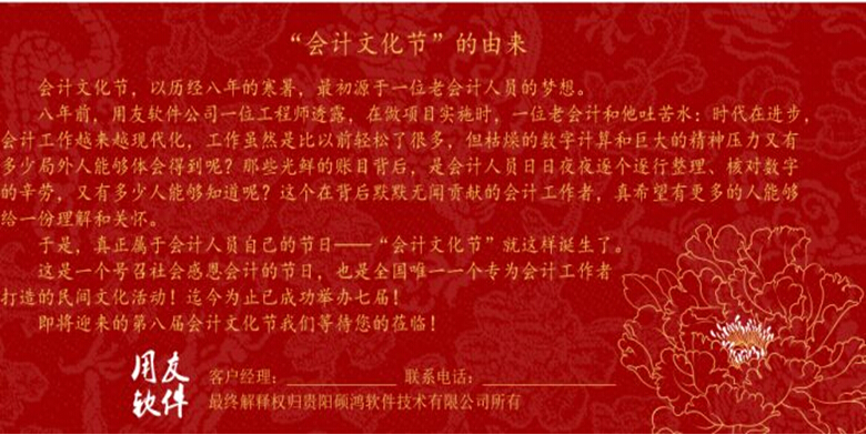 &n₽®bsp; 我公司即将舉行(xíng)貴州區(qū)首站(zhàn)“第八屆會(huì)計(jì)文(wén)化(huà)節”,歡迎各位新老(lǎo)用(yòng)戶光(gu §āng)臨!!